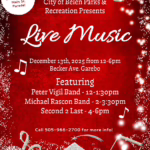 🎶✨ Live Music at the Belen Christmas Market! ✨🎶 Join us on Saturday, December 13th, 2025 for an amazing lineup of FREE live music at the Becker Ave. Gazebo during the Outdoor Christmas Market! 📍 Becker Ave. Gazebo ⏰ 12pm – 6pm 🎤 Music Lineup: 12:00–1:30pm — Peter Vigil Band 2:00–3:30pm — Michael Rascon Band 4:00–6:00pm , ...Visit With Santa and Mrs. Claus2:00 pm - 5:00 pm