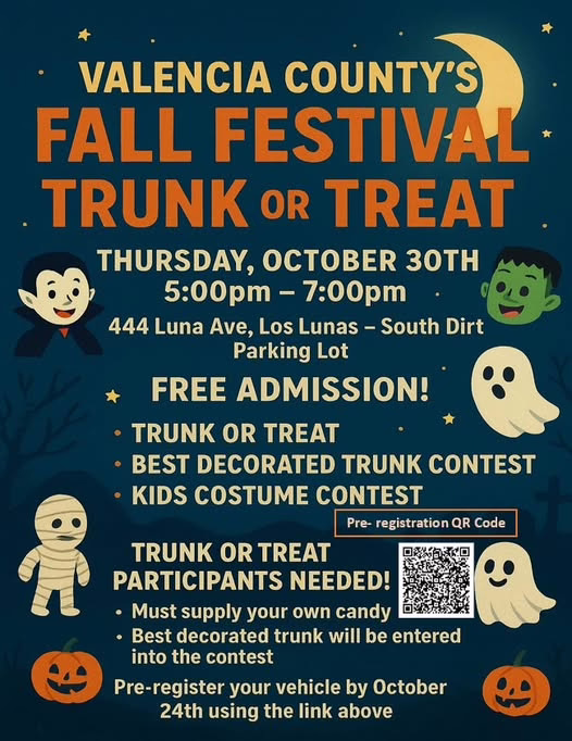 Thursday, October 30th from 5-7pm at 444 Luna Ave, Los Lunas – South Dirt Parking Lot