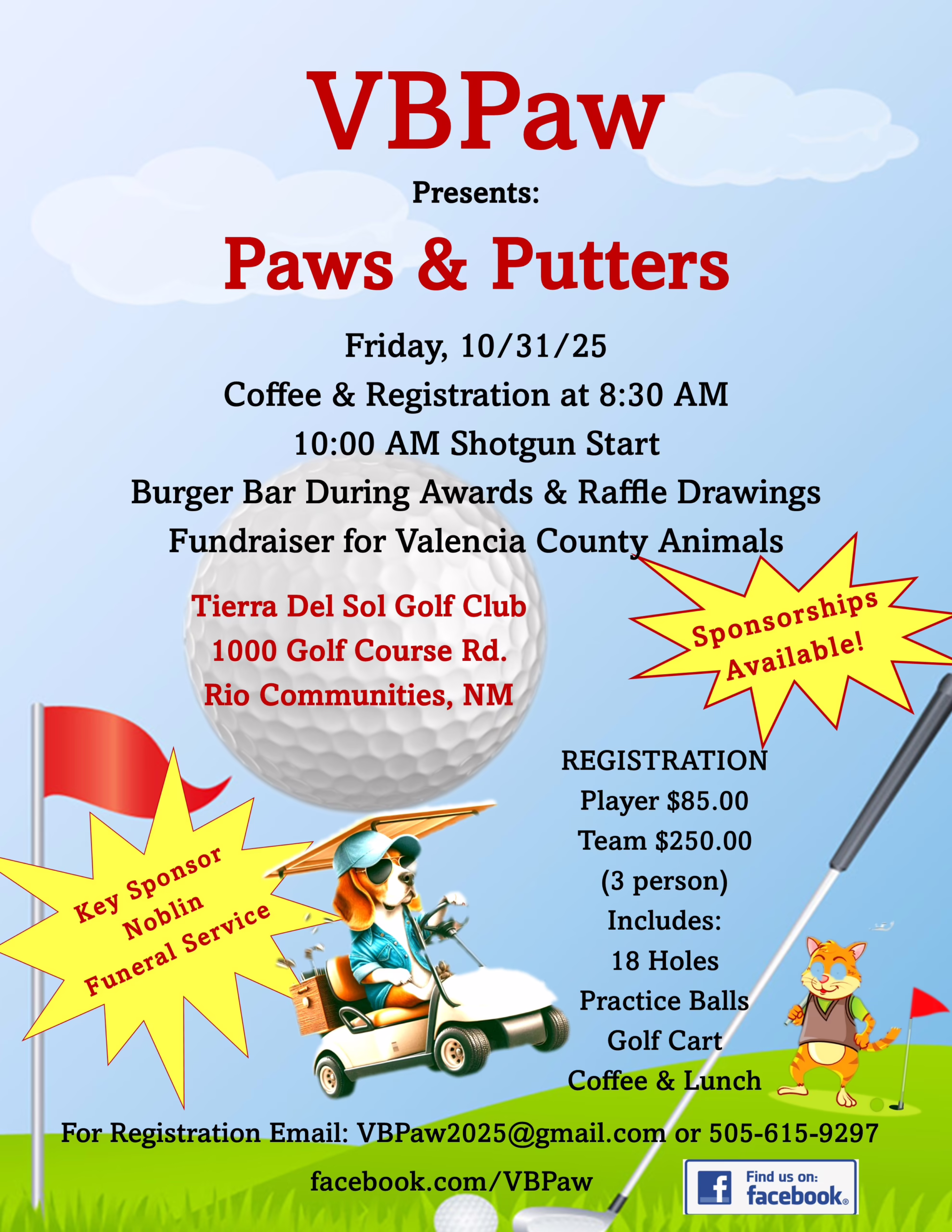 For registration, email VBPaw2025@gmail.com or call 505-615-9297