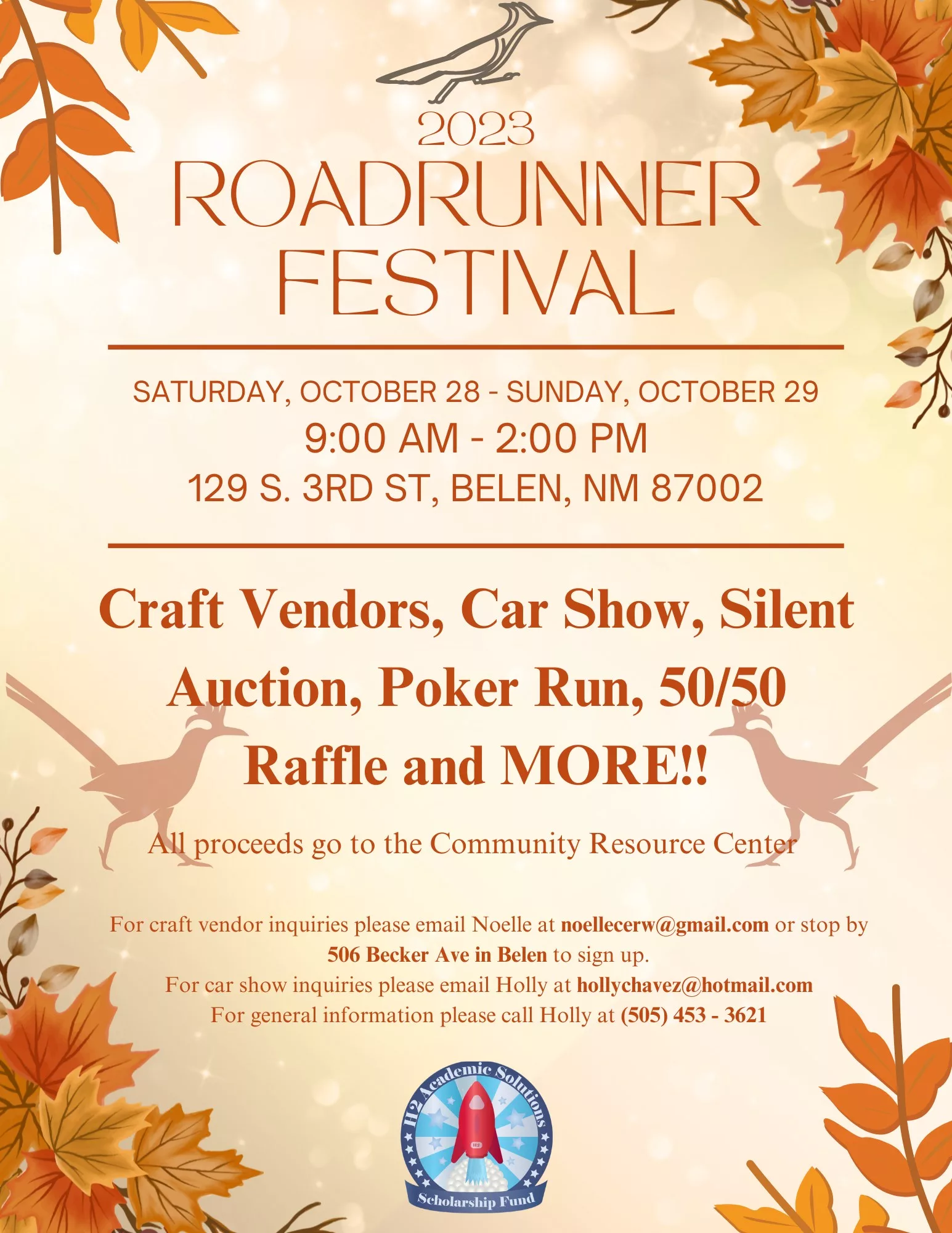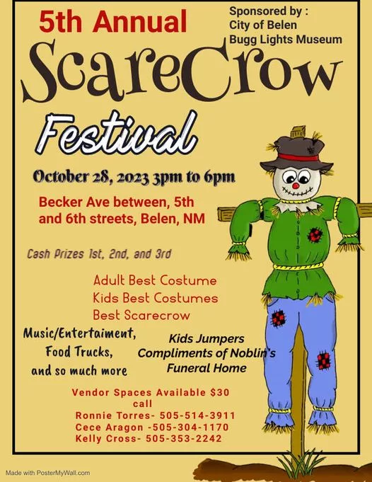 On October 28th Belen will once again be hoppin’! During the day the Roadrunner Festival and Art in the Park – Dia de los Muertos will keep folks busy and then in the late afternoon/evening there will be the Scarecrow Fest and Nightmare on Becker!