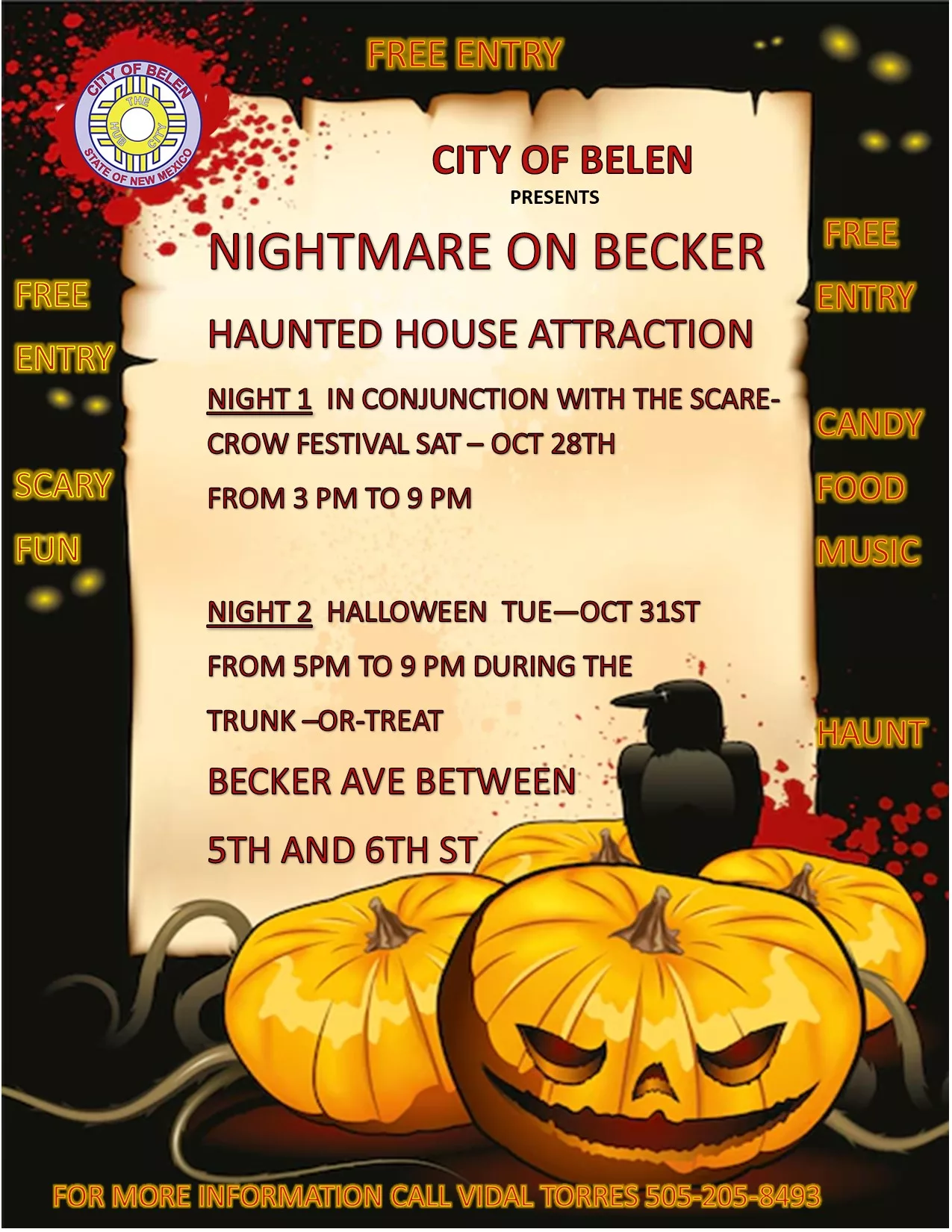On October 31st celebrate Halloween in Belen! RSVP will hold a Halloween Dance at the Belen Senior Center from 10am – 12pm, the City of Belen Parks and Recreation Department will host a Trunk or Treat, and Nightmare on Becker will return!