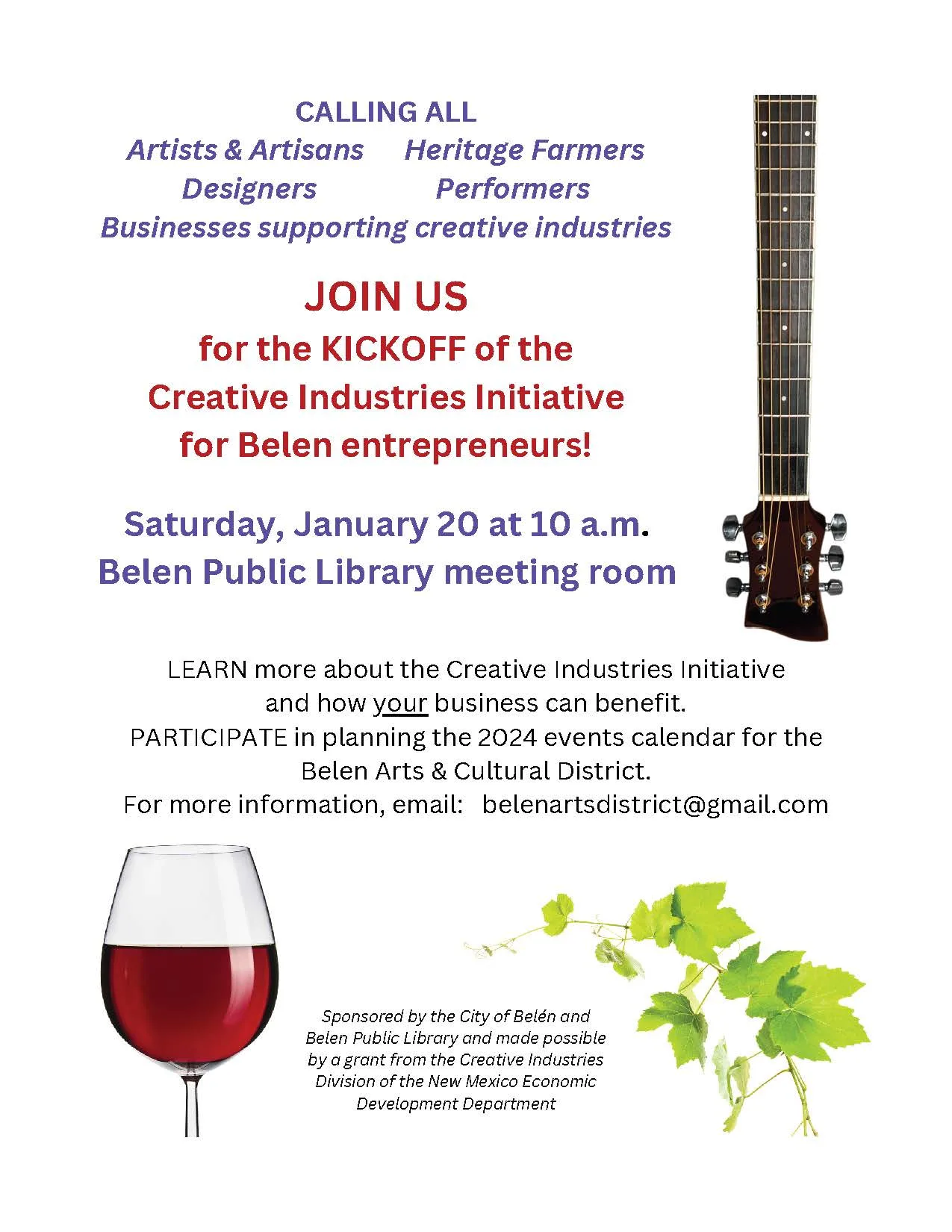 Kickoff of the Creative Industries Initiative – Saturday, January 20th 10am. Belen Public Library public meeting room.
