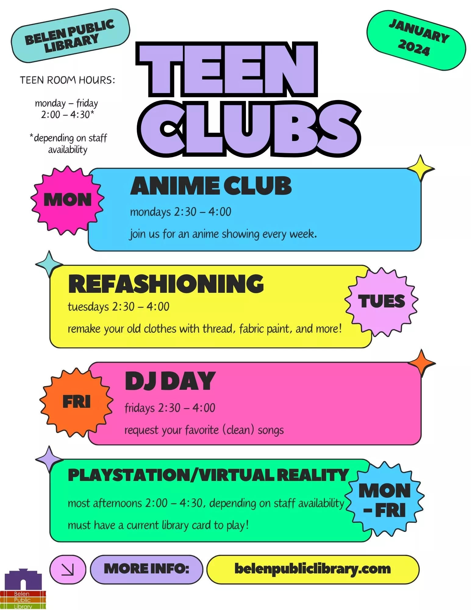 Teen Club – DJ Day – Friday, Jan. 19th 2pm – 4:30pm. Belen Public Library