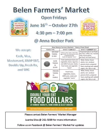 4:30pm – 7pm – Belen Farmers’ Market at Anna Becker Park