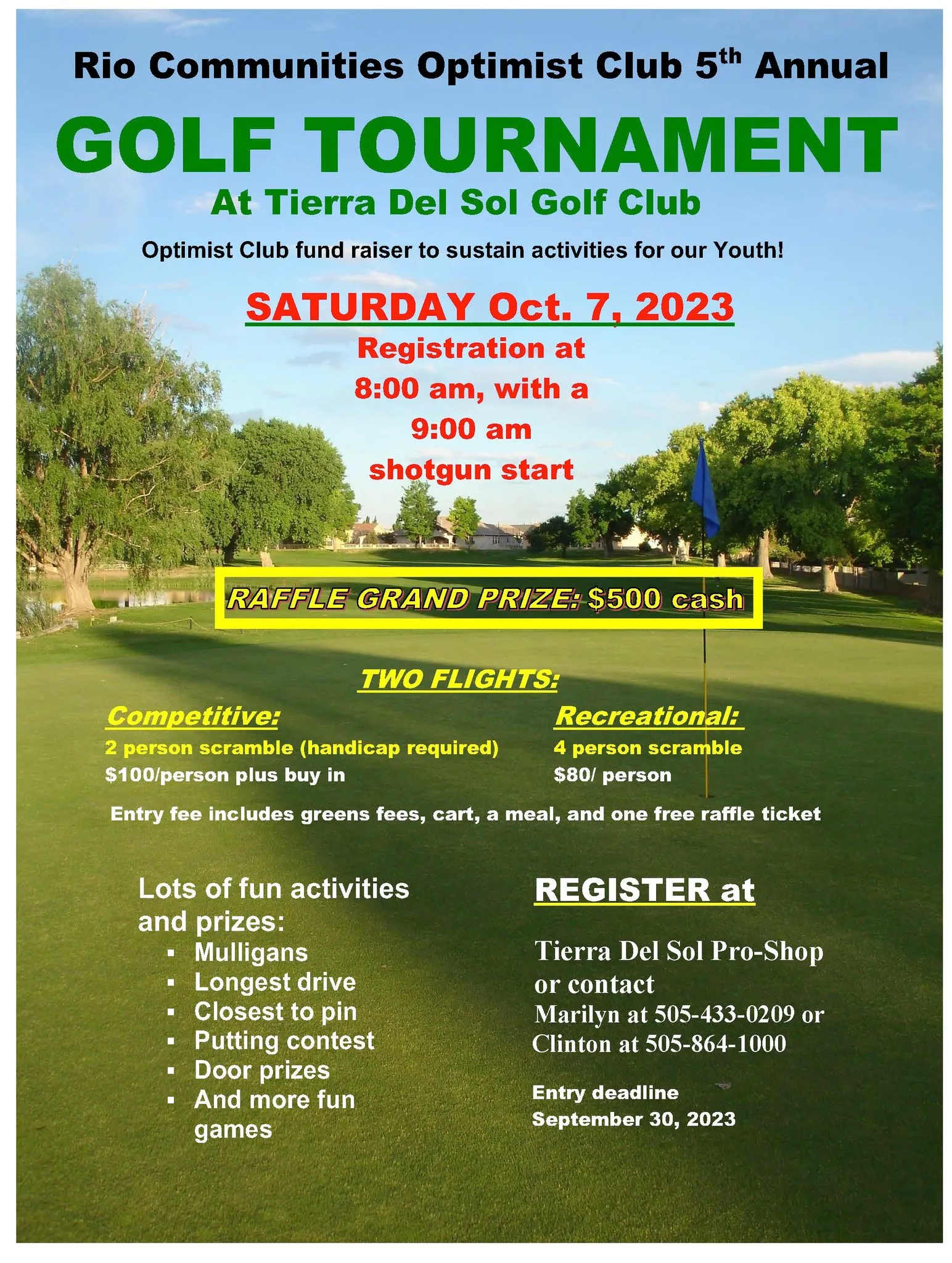 8:00am – Rio Communities Optimist Club 5th Annual Golf Tournament at Tierra Del Sol Golf Course