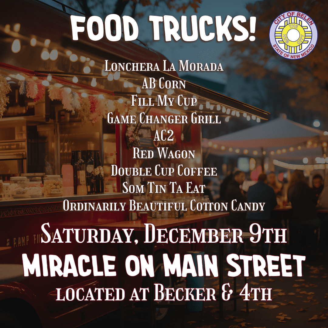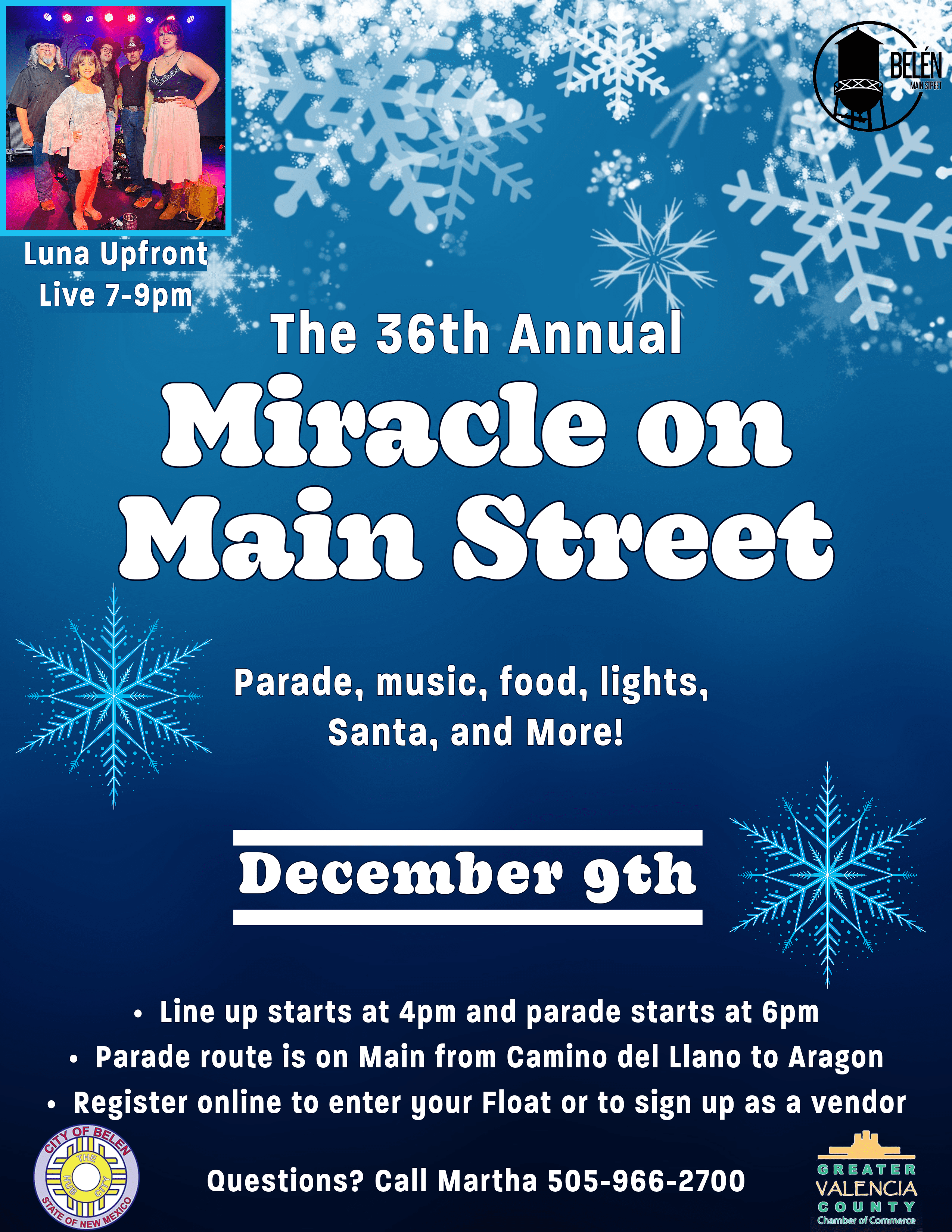 Looking for something fun to do this weekend? Belen has you covered! Saturday is the 36th Annual Miracle on Main Street parade and celebration and along with it are many different events all along Becker Ave! Check out all of the information for Friday, Saturday, and Sunday below.